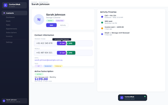 ContactHub Click-to-Call은 Keap 플랫폼 내에서 커뮤니케이션 효율성을 향상시키기 위해 설계된 Chrome 확장 프로그램입니다. 이 무료 추가 기능은 Keap(이전 Infusionsoft)의 모든 전화번호 옆에 통화 및 SMS 버튼을 추가하여 원활하게 통합됩니다. 사용자는 이러한 버튼을 클릭하여 수동 입력이나 복사-붙여넣기 없이 통화를 시작하거나 메시지를 보낼 수 있습니다. 이 확장 프로그램은 연락처, 리드 및 대화를 관리하는 데 특히 유용하며, 커뮤니케이션이 빠르고 간단하게 이루어지도록 보장합니다.